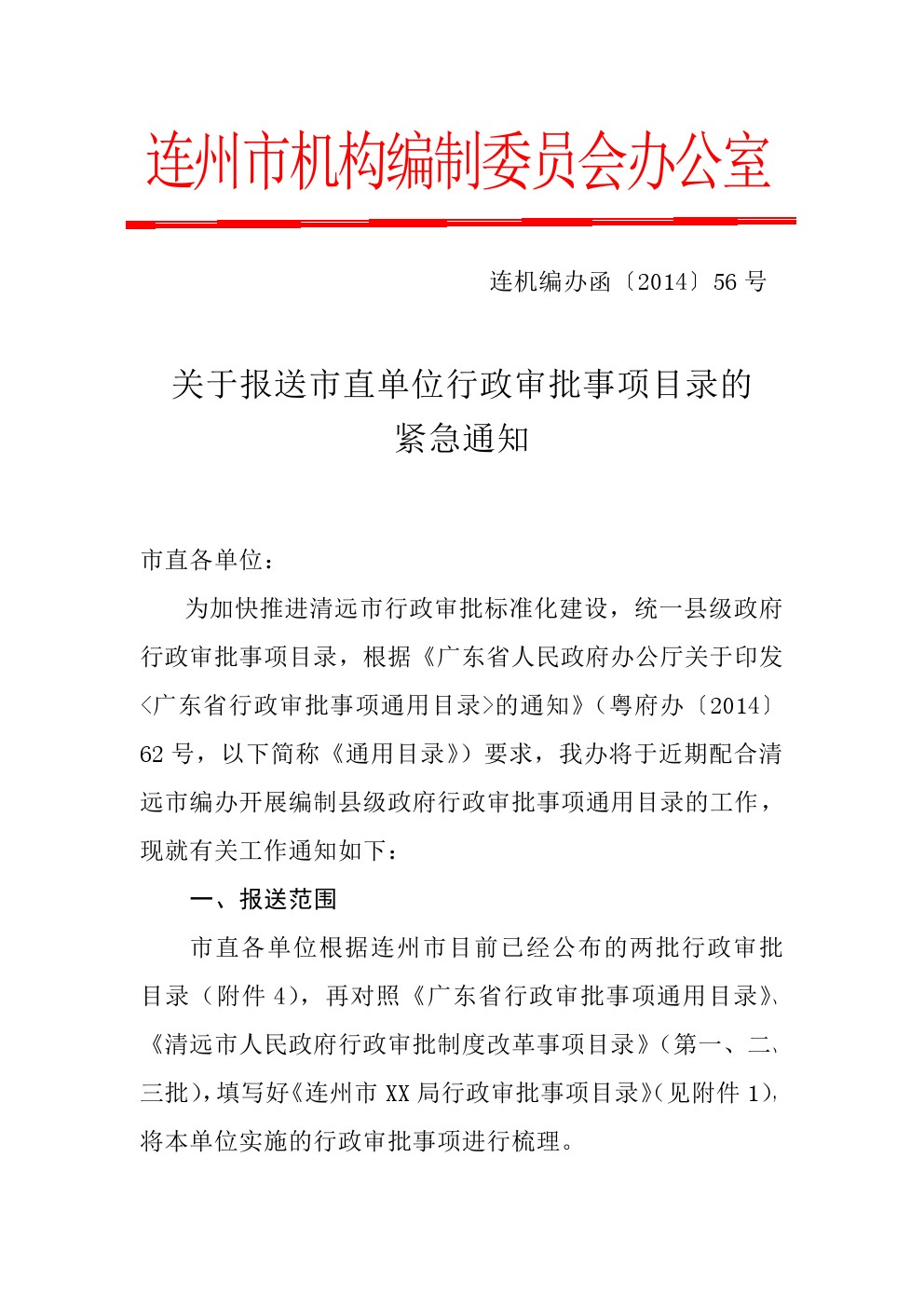 關(guān)于報(bào)送市直單位行政審批事項(xiàng)目錄的緊急通知