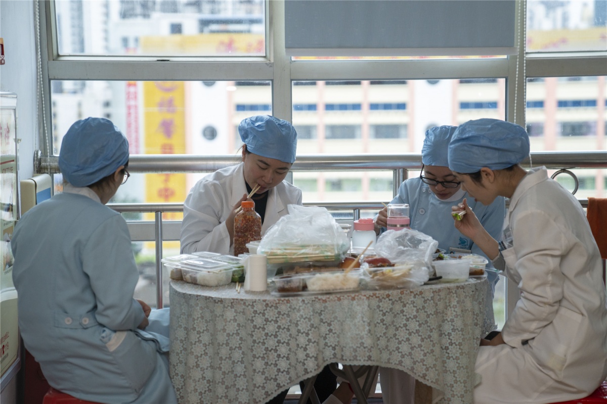 1月26日中午,市人醫(yī)呼吸科護士吃午飯。清遠日報全媒體記者 李思靖 攝