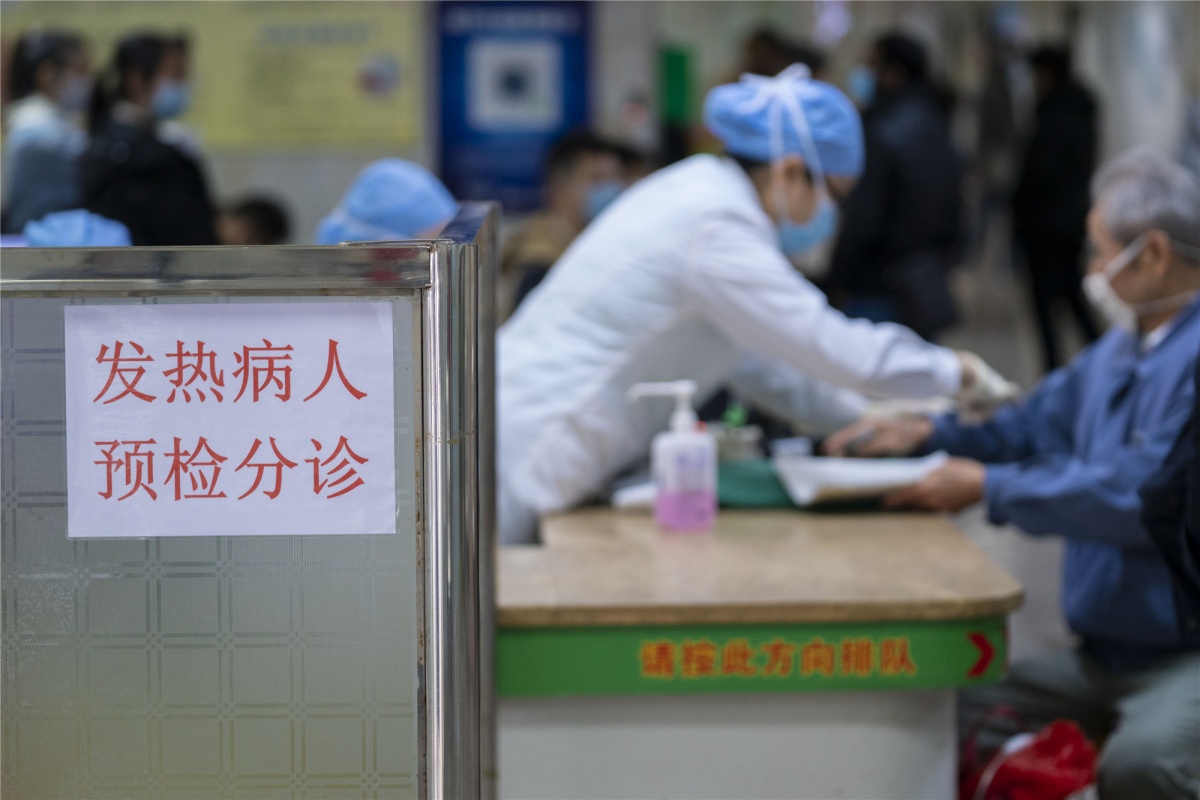 1月26日,市人醫(yī)急診科醫(yī)護人員給發(fā)熱病人做預檢分診。清遠日報全媒體記者 李思靖 攝