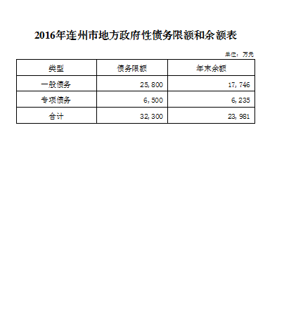 2016年地方政府性債務(wù)限額和余額表