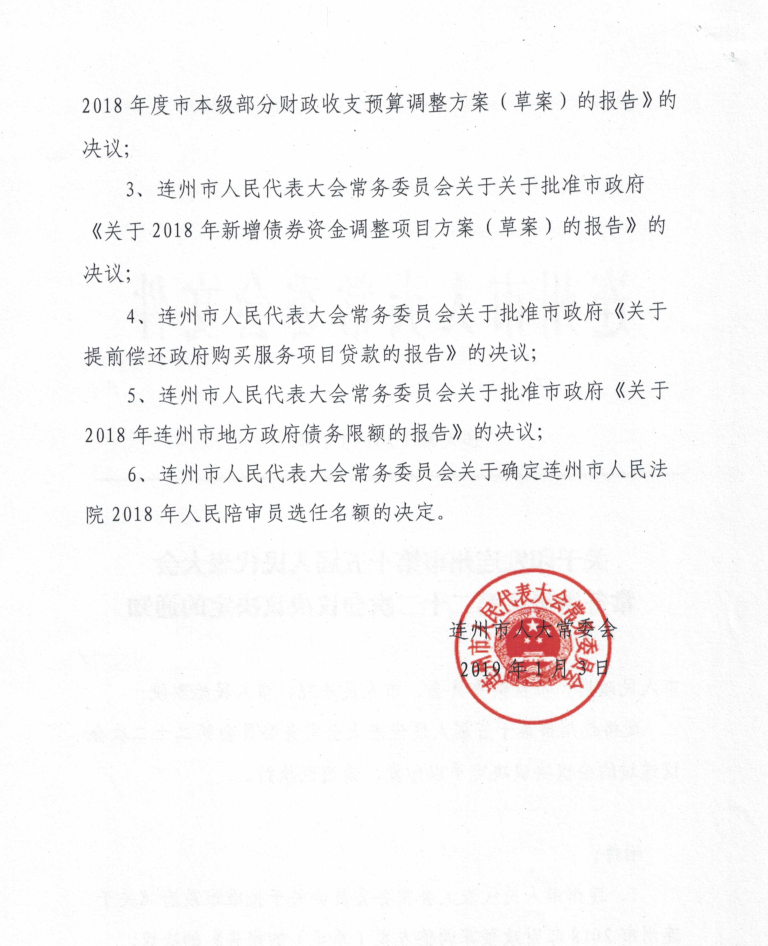 2018年本級(jí)預(yù)算調(diào)整決議