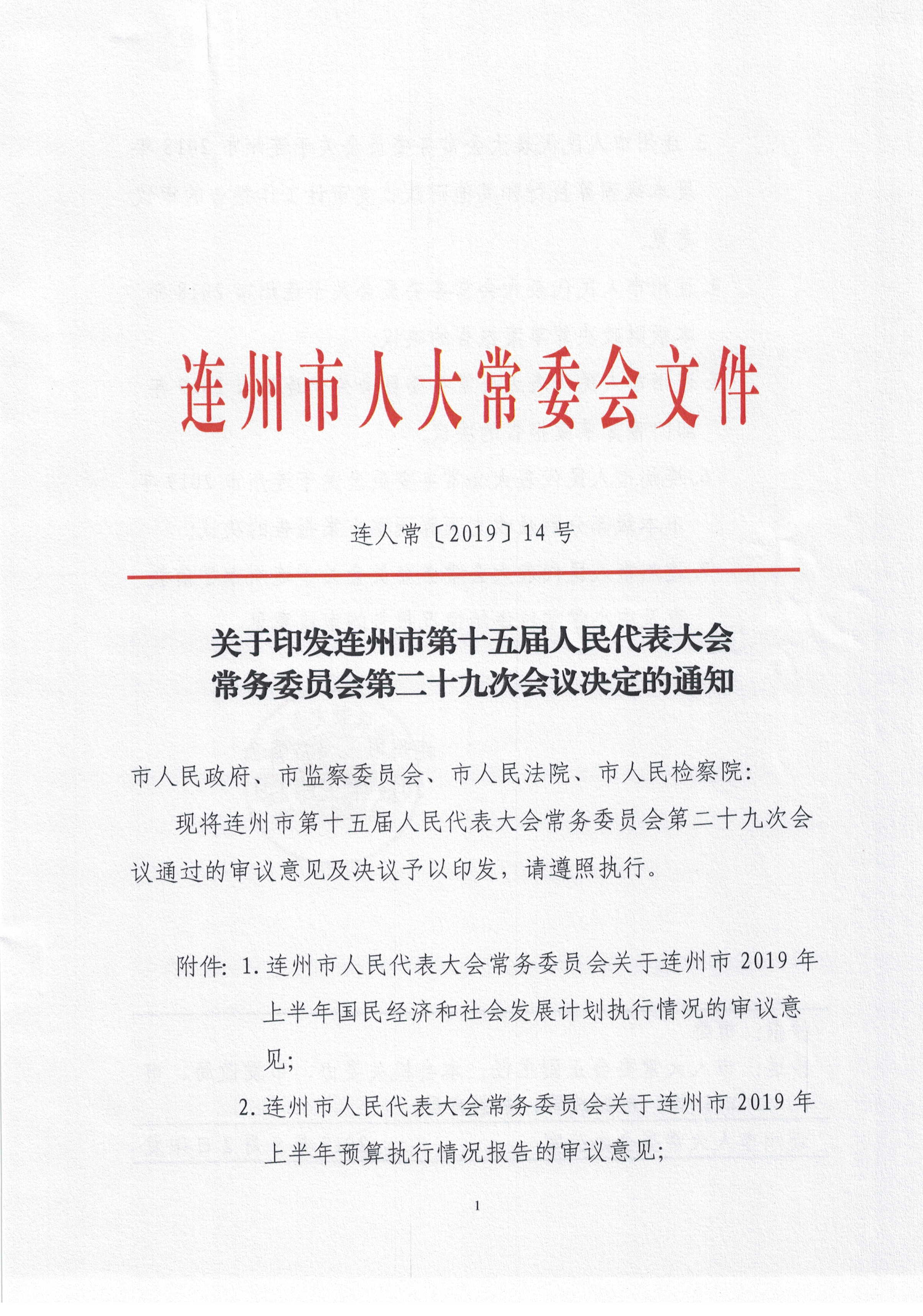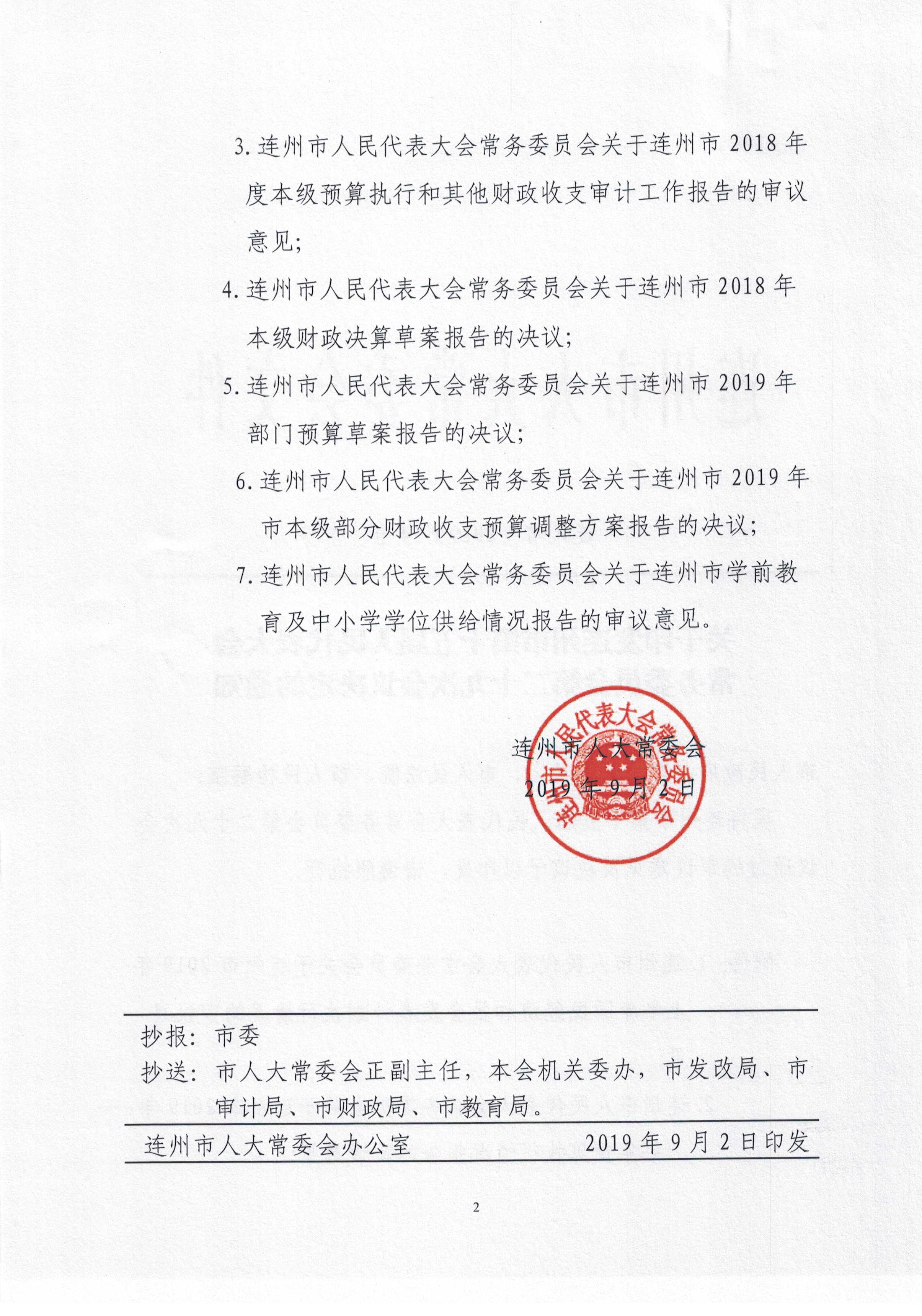 連州市2018年本級(jí)財(cái)政決算草案決議