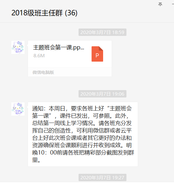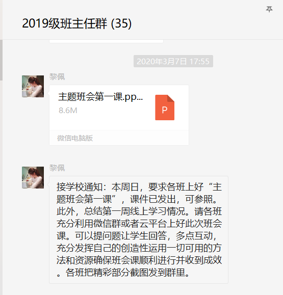 會(huì)前,學(xué)校學(xué)生科老師精心策劃本次班會(huì)的主題內(nèi)容并制作了課件,為了讓網(wǎng)絡(luò)班會(huì)流程更流暢更順暢,各班主任在學(xué)生科指引下提前下載主題班會(huì)的課件并結(jié)合本班班情進(jìn)行修改做好準(zhǔn)備,班會(huì)準(zhǔn)備工作井然有序。