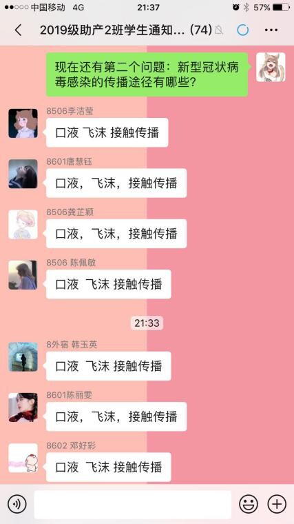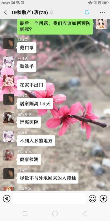 會(huì)上,班主任通過(guò)PPT教學(xué)及播放視頻,與同學(xué)們線上互動(dòng),一起了解了什么是新型冠狀病毒、感染新型冠狀病毒的臨床表現(xiàn),病毒傳播途徑等內(nèi)容,給同學(xué)們提出做好自身防護(hù)的建議。同時(shí),介紹了居家、旅途“防疫”小知識(shí),告知學(xué)生佩戴口罩的重要性,口罩既避免了他人咳嗽及飛沫等傳染病的傳播,也是對(duì)大家健康安全的尊重。通過(guò)本次班會(huì)課的防疫知識(shí)宣傳,提高了同學(xué)們的健康衛(wèi)生意識(shí),增強(qiáng)了學(xué)生的防疫能力,為學(xué)生健康安全回校打下堅(jiān)實(shí)基礎(chǔ)。