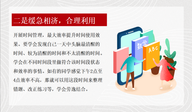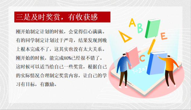 班主任還介紹了如何在疫情期科學(xué)做好停課不停學(xué)。一是學(xué)習(xí)要專注;二是緩急相濟(jì),合理利用;三是及時(shí)獎(jiǎng)賞,有收獲感;四是確定目標(biāo),每天檢查,在完成學(xué)校老師線上布置的功課外,對(duì)各學(xué)科的知識(shí)進(jìn)行查漏補(bǔ)缺,建立知識(shí)系統(tǒng),為即將到來(lái)的新學(xué)期做好充分準(zhǔn)備。