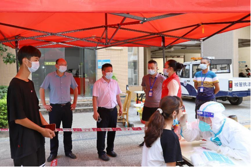 截至7月15日三天的時(shí)間,連州衛(wèi)生學(xué)校共派出505人次參加志愿服務(wù)工作,其中包括黨員教師、飯?zhí)寐毠ぁ⑸罾蠋?。他們頂著烈日,即使最高溫度達(dá)39℃,也無怨無悔地忙碌在核酸檢測一線。