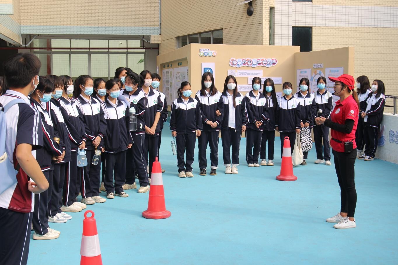 學(xué)生進行溺水施救模擬演練