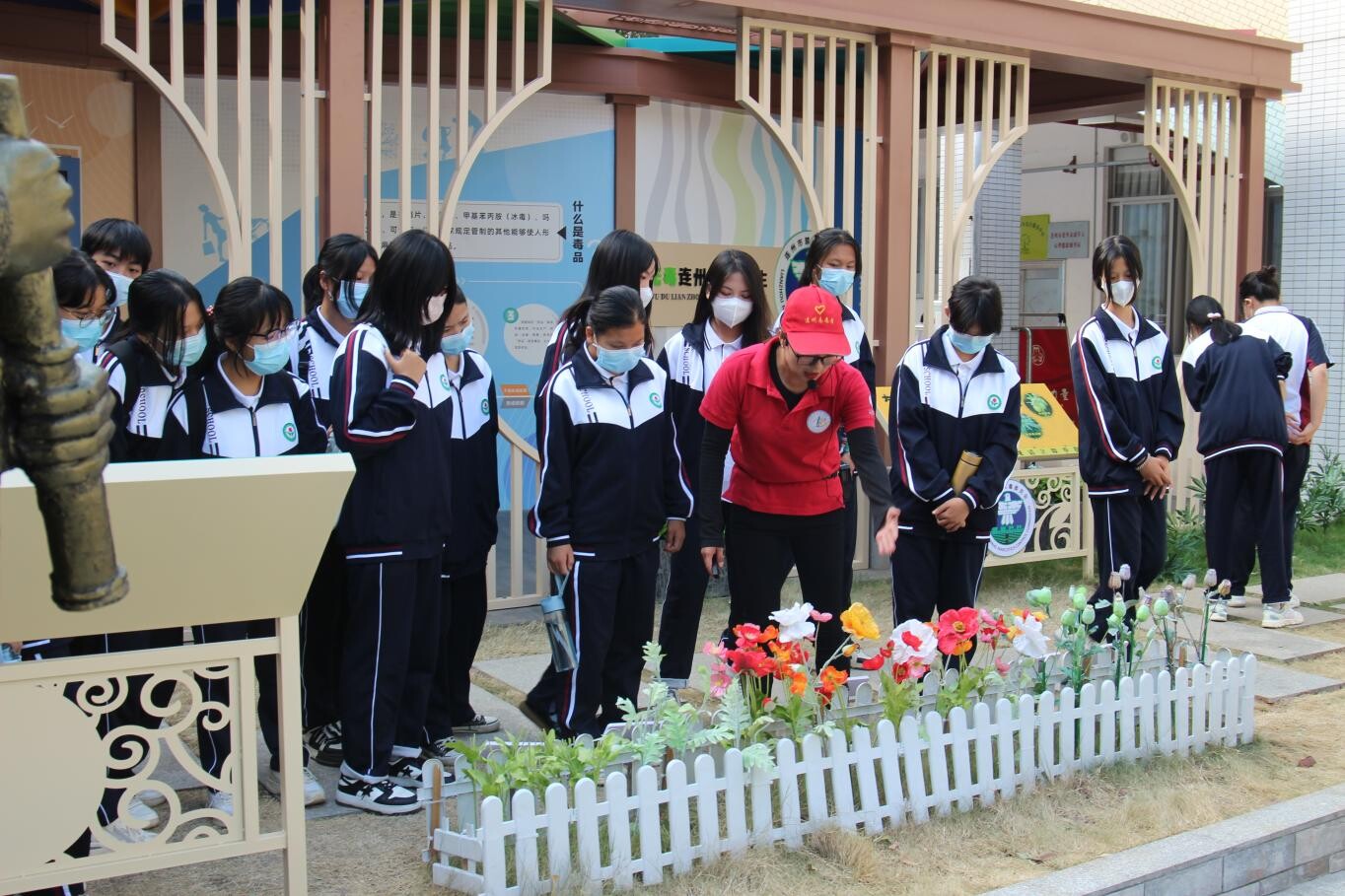 講解員向?qū)W生講述死亡之花——罌粟
