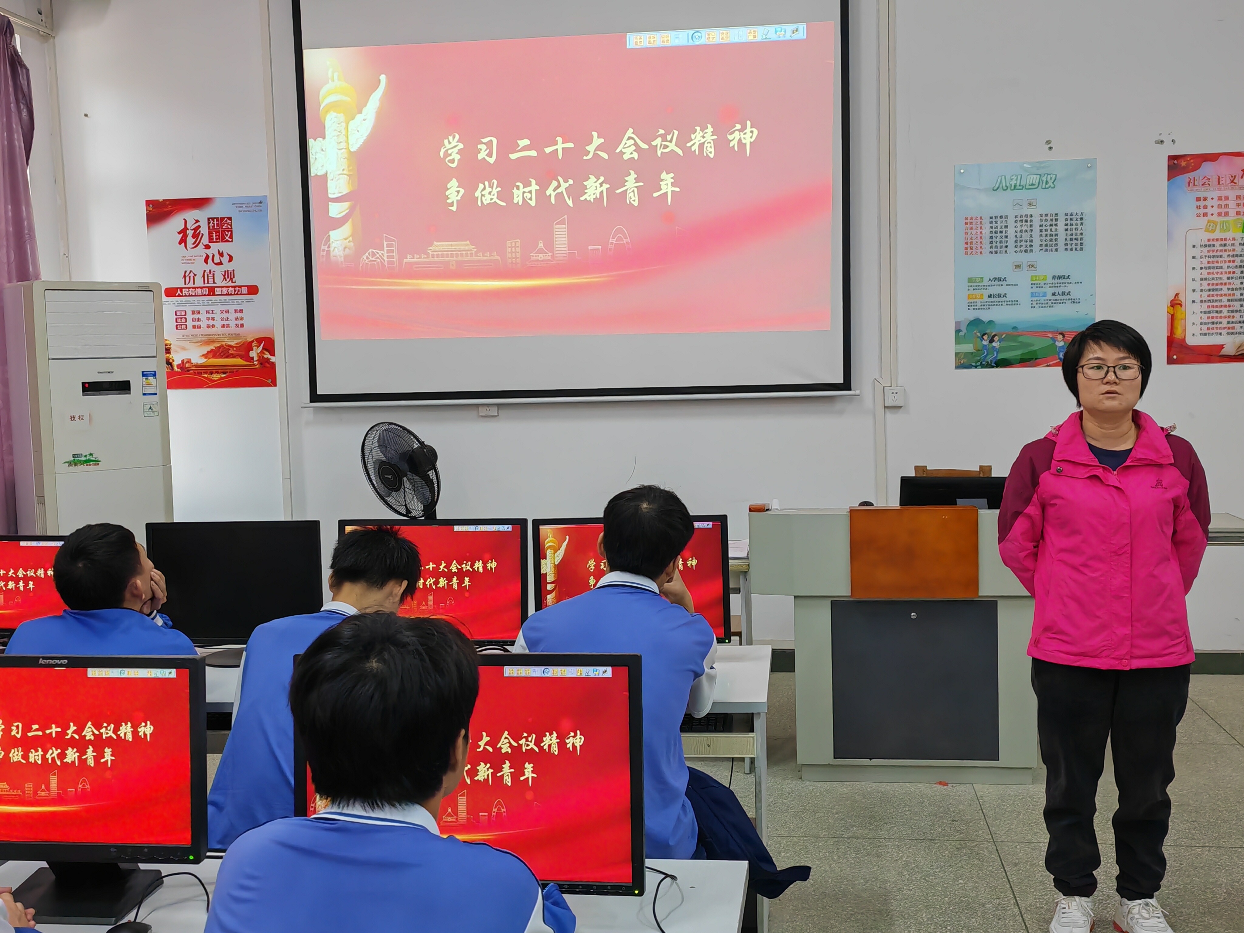 三、連州市職業(yè)技術(shù)學(xué)校繼續(xù)以黨建帶團(tuán)建,組織學(xué)生學(xué)習(xí)黨的二十大精神,做到“少年強(qiáng)則國(guó)強(qiáng)”。為進(jìn)一步加強(qiáng)學(xué)生愛(ài)國(guó)主義教育,厚植共青團(tuán)愛(ài)黨愛(ài)國(guó)愛(ài)社會(huì)主義情感,11月28日,全校班主任利用班會(huì)課開展“學(xué)習(xí)黨的二十大精神,爭(zhēng)做時(shí)代新青年”主題班會(huì)。各班思政課教師利用課前10分鐘宣傳黨的二十大精神,鼓勵(lì)全體同學(xué)立志銘心,砥礪品格,樹立理想,攜手拼搏,努力成長(zhǎng)為堪當(dāng)民族復(fù)興重任的時(shí)代新人!