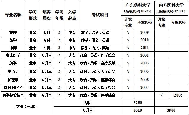 學(xué)校2023年繼續(xù)與廣東藥科大學(xué)聯(lián)合舉辦本科層次臨床醫(yī)學(xué)、護(hù)理、藥學(xué)、中藥學(xué)專業(yè)專升本學(xué)歷繼續(xù)教育,??茖哟巫o(hù)理、藥學(xué)、中藥學(xué)專業(yè)學(xué)歷繼續(xù)教育;與南方醫(yī)科大學(xué)聯(lián)合舉辦本科層次醫(yī)學(xué)檢驗(yàn)專業(yè)專升本學(xué)歷繼續(xù)教育,歡迎有志向提升學(xué)歷的衛(wèi)生技術(shù)人員報(bào)讀。