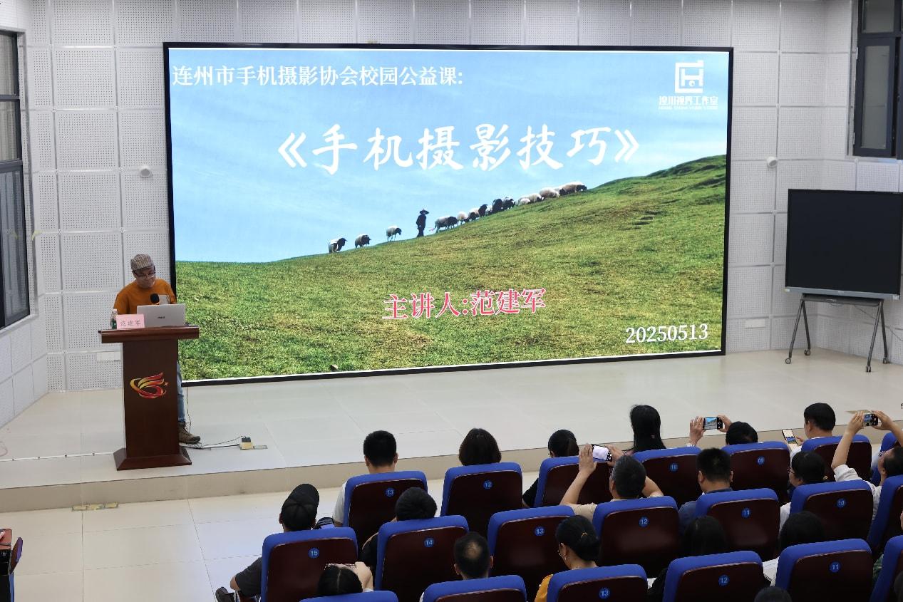 揭牌儀式后,湟川視界工作室負(fù)責(zé)人范建軍帶來(lái)首場(chǎng)特色課程講座——《手機(jī)攝影技巧》。通過(guò)案例演示與互動(dòng)問(wèn)答,現(xiàn)場(chǎng)師生掌握了構(gòu)圖、光影等實(shí)用技能,反響熱烈。
