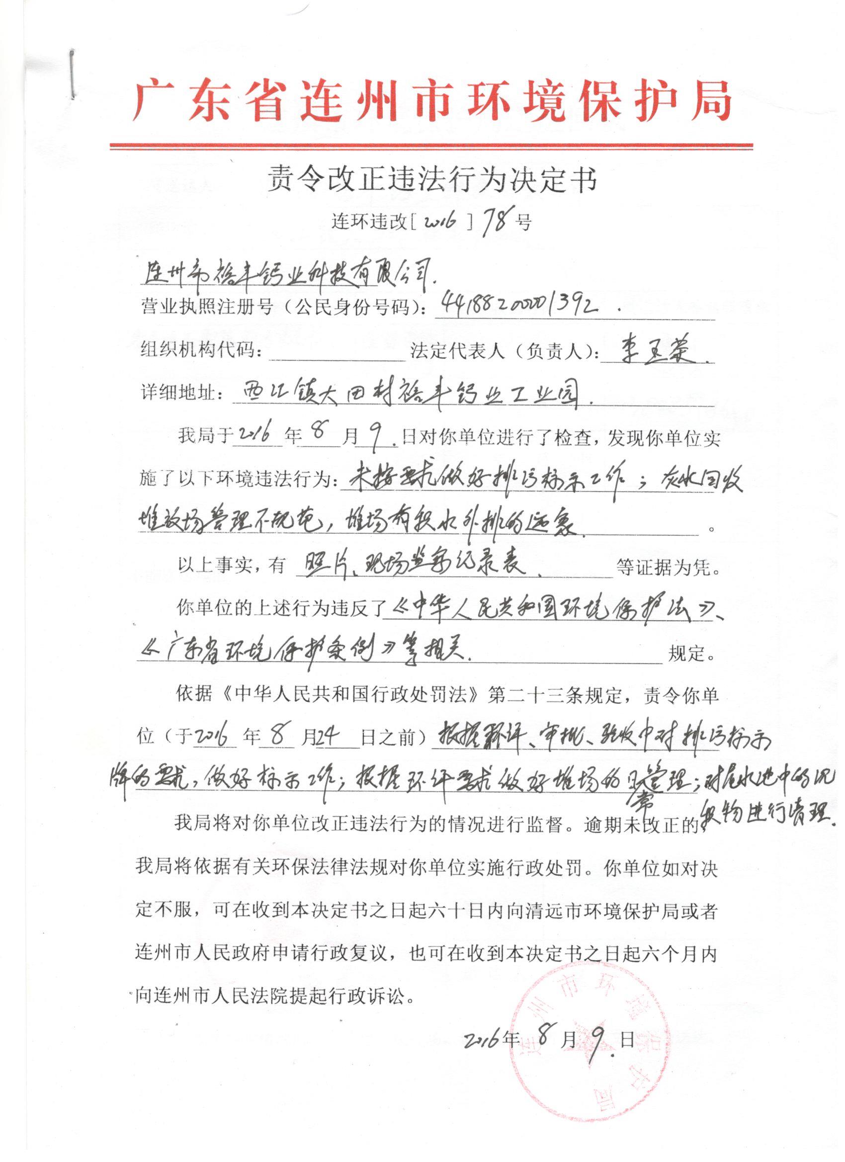 連環(huán)違改字[2016]78號(hào)