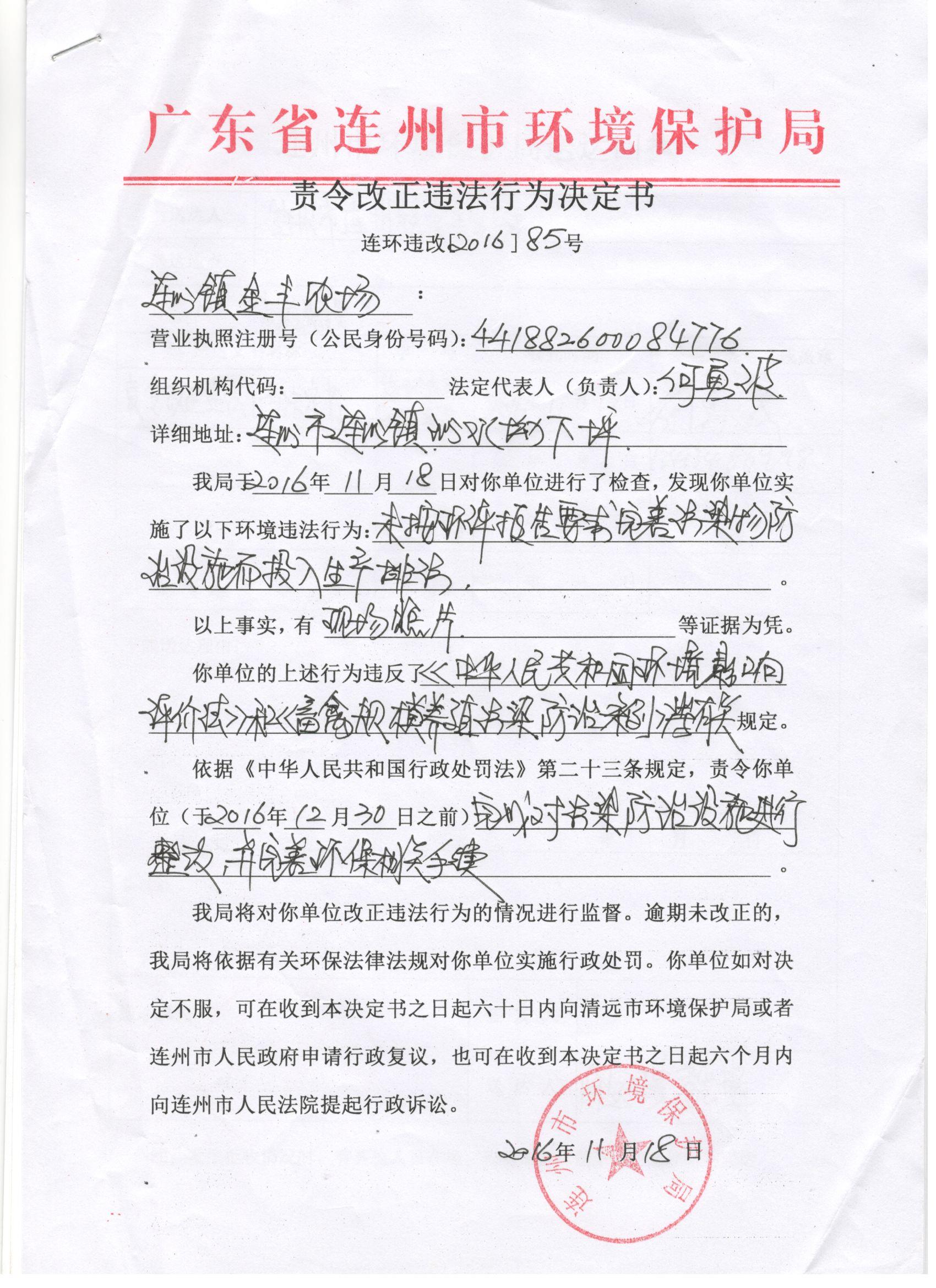 連環(huán)違改字[2016]85號