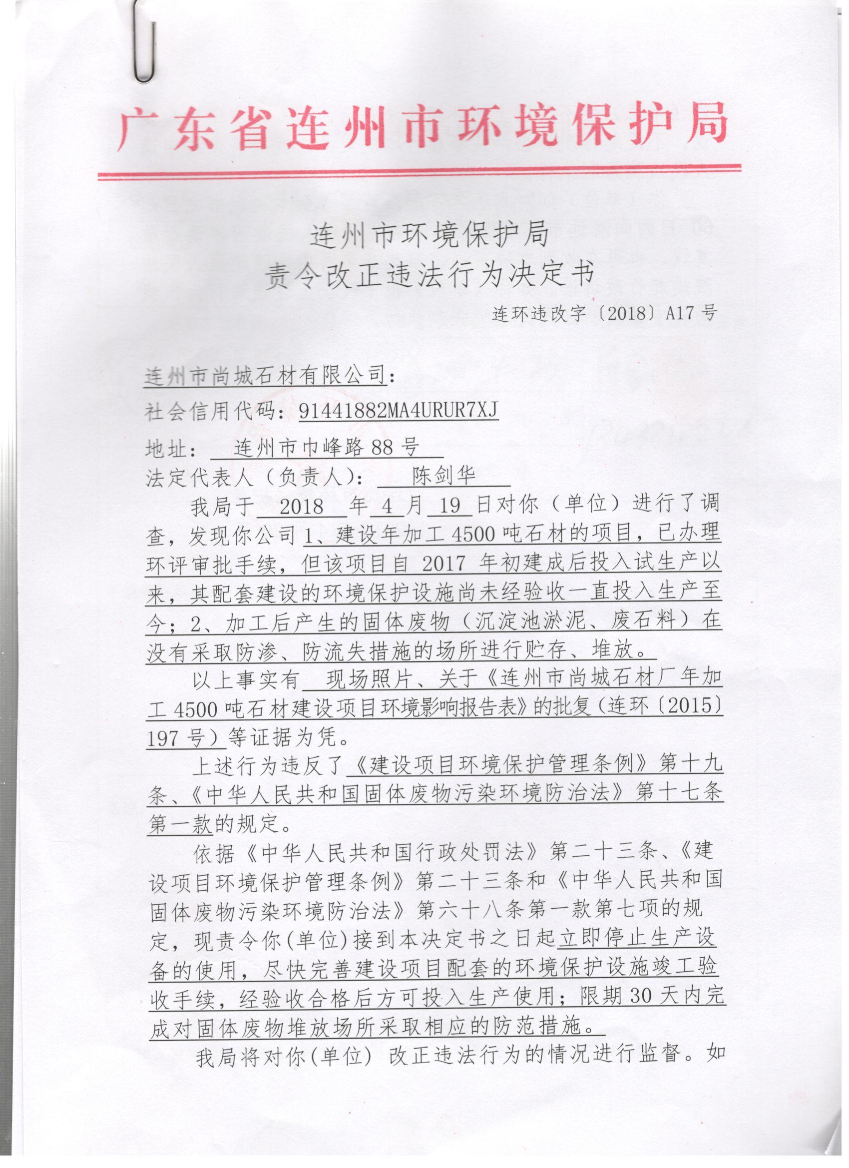 環(huán)違改字[2018]A17號(hào)