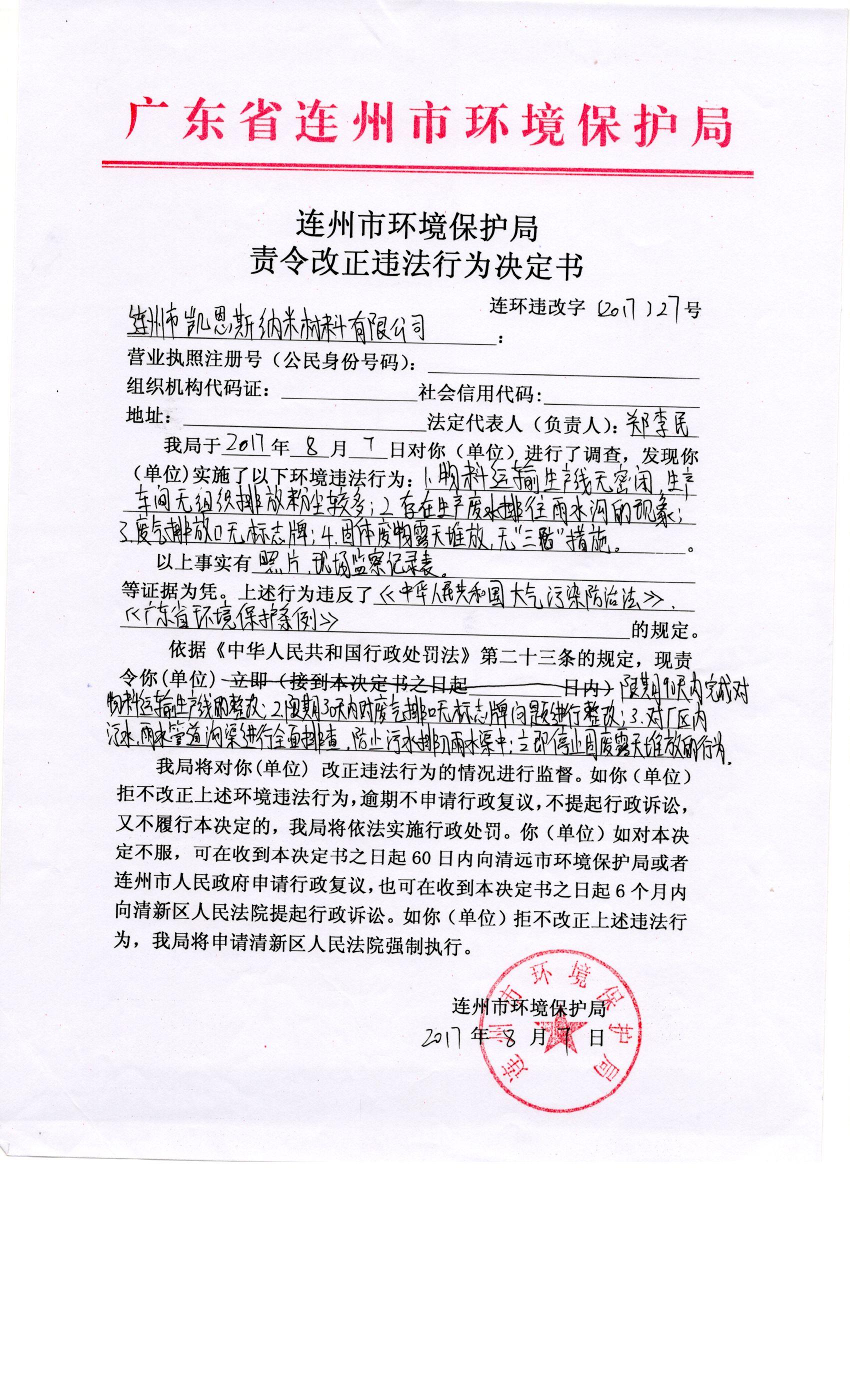 連環(huán)違改字[2017]27號