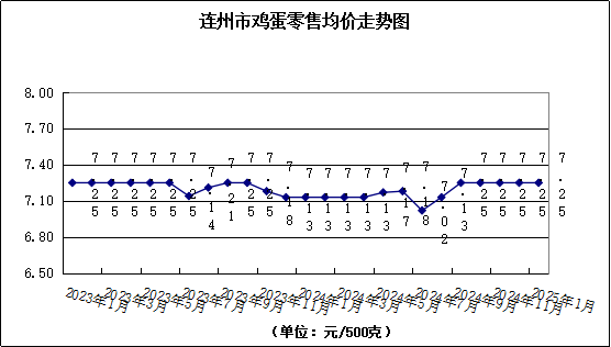 蛋類雞蛋平均零售價格為7.25元/500克,環(huán)比不變。鴨蛋平均零售價格為8.63元/500克,環(huán)比不變。