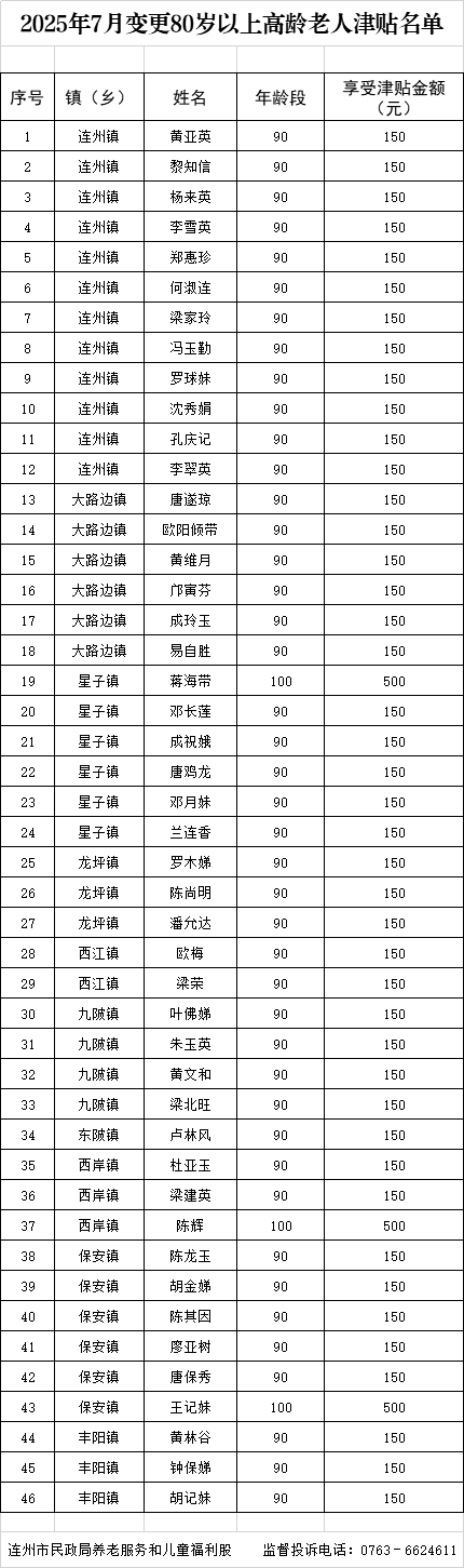 2025年7月變更80歲以上高齡老人津貼名單