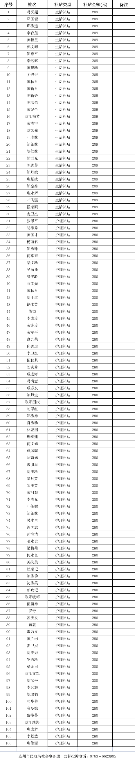 連州市2026年1月新增殘疾人兩項補貼名單