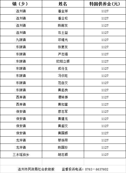 2023年11月新增特困對象名單