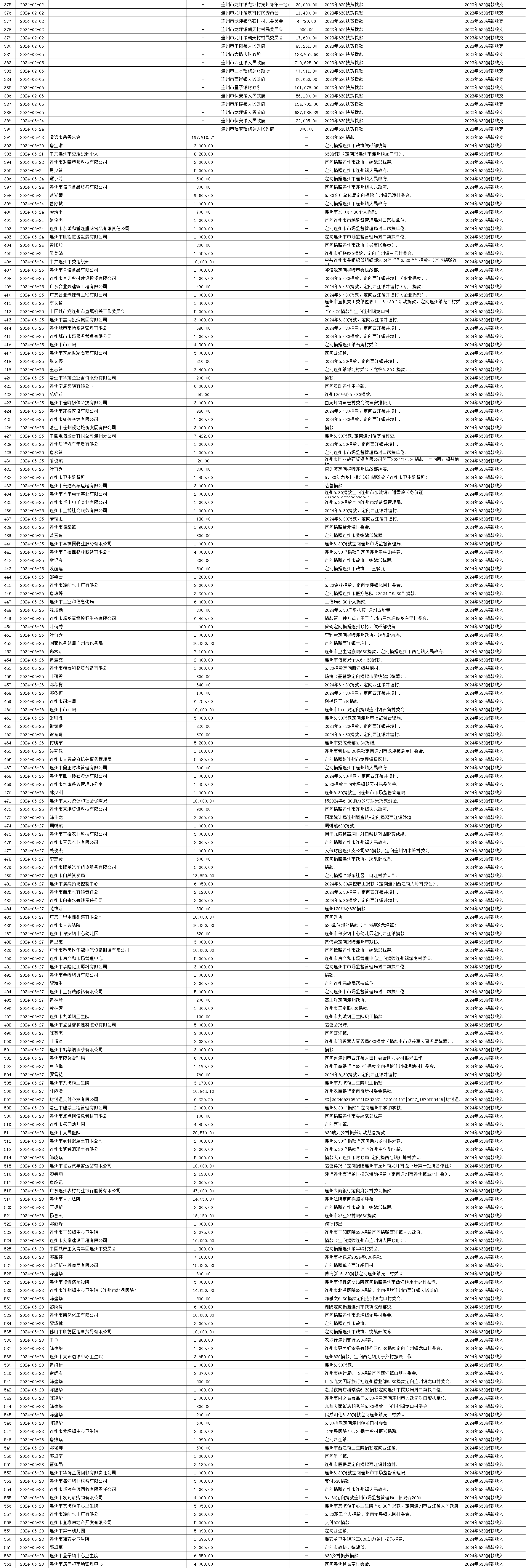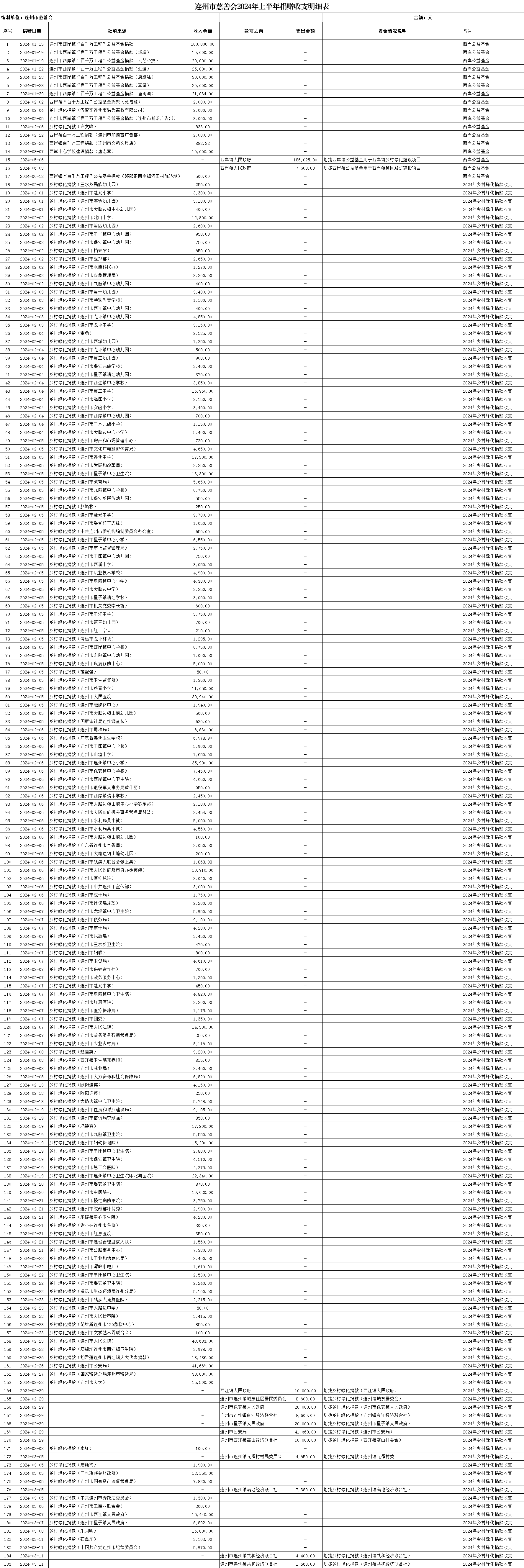 關(guān)于連州市慈善會(huì)2024年上半年捐贈(zèng)收支明細(xì)的公示