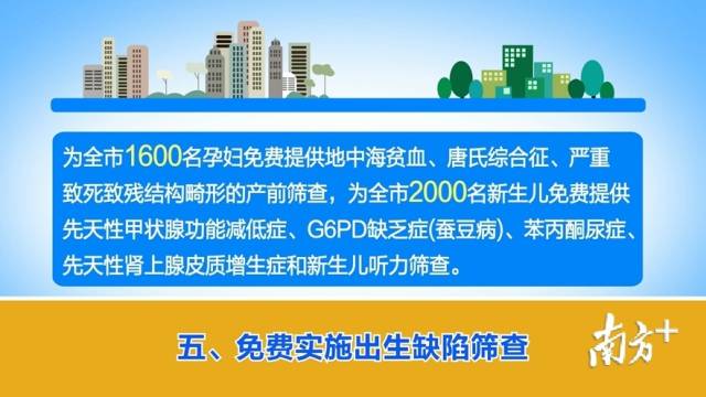 五、免費(fèi)實(shí)施出生缺陷篩查。為全市1600名孕婦免費(fèi)提供地中海貧血、唐氏綜合征、嚴(yán)重致死致殘結(jié)構(gòu)畸形的產(chǎn)前篩查,為全市2000名新生兒免費(fèi)提供先天性甲狀腺功能減低癥、G6PD缺乏癥(蠶豆病)、苯丙酮尿癥、先天性腎上腺皮質(zhì)增生癥和新生兒聽力篩查。(主管部門:市衛(wèi)生健康局)