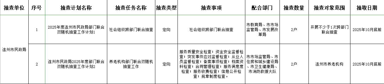 連州市民政局2025年度部門聯(lián)合雙隨機(jī)抽查工作計(jì)劃(跨部門)