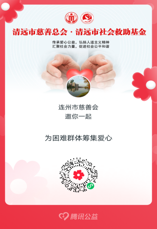 您的小小善舉,或許能為一個(gè)家庭送去一份希望、為病患減輕一份負(fù)擔(dān)、為孩子提供一份力量,值此第十個(gè)全國(guó)“中華慈善日”到來(lái)之際,我們以最真摯的情感、最崇高敬意,誠(chéng)邀全市各黨政機(jī)關(guān)、企事業(yè)單位、人民團(tuán)體、社會(huì)組織和社會(huì)各界愛(ài)心人士共襄善舉、奉獻(xiàn)愛(ài)心,積極參與清遠(yuǎn)市“10元助困·愛(ài)心無(wú)限”募捐倡議!讓我們攜手同行,用行動(dòng)詮釋“樂(lè)善清遠(yuǎn)人人慈善”力量!