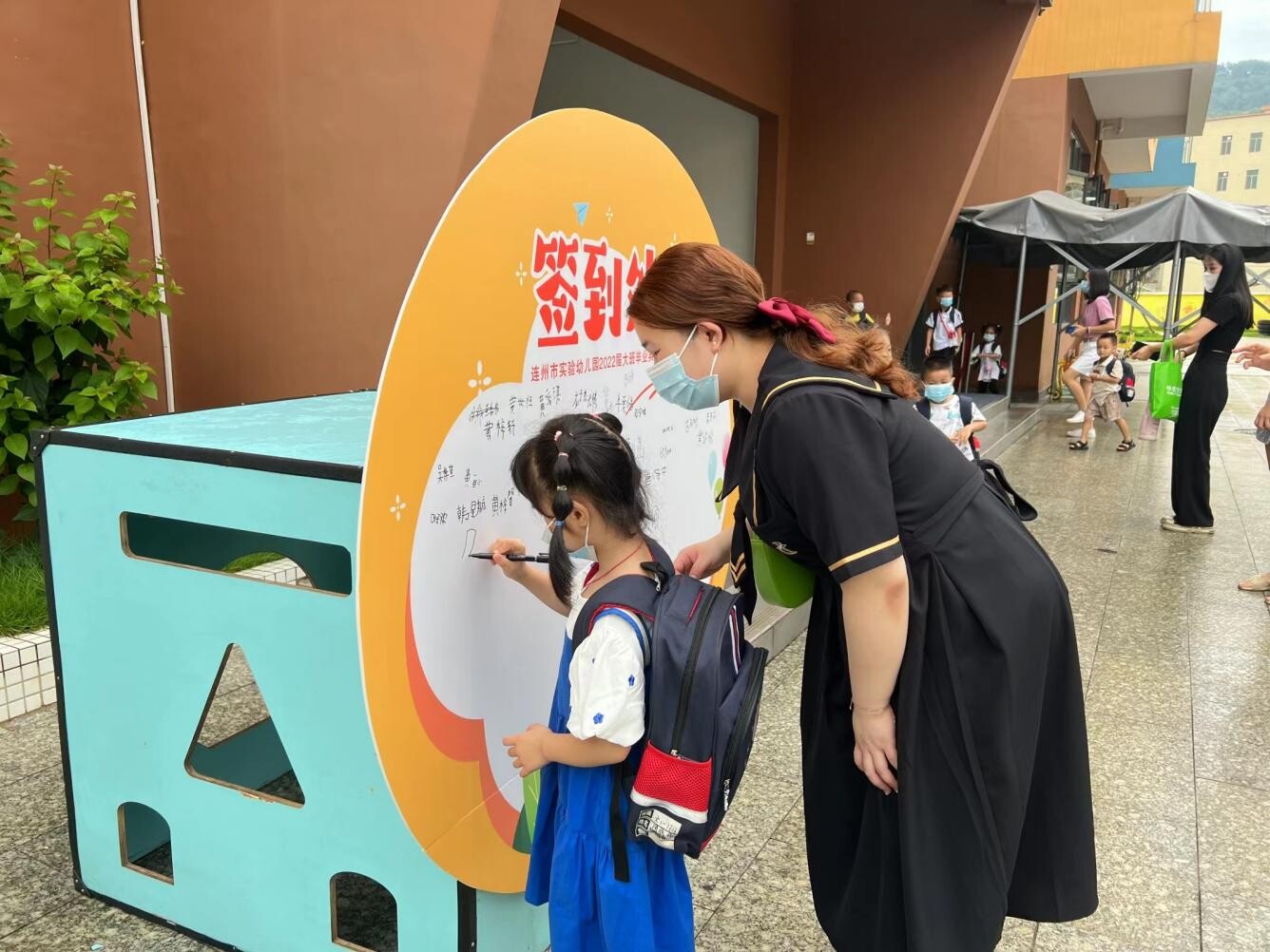 第一個環(huán)節(jié):成長之門——孩子們在畢業(yè)簽名墻上寫下自己的名字,將幼兒園的美好時光留下特殊的印記,難忘的瞬間。