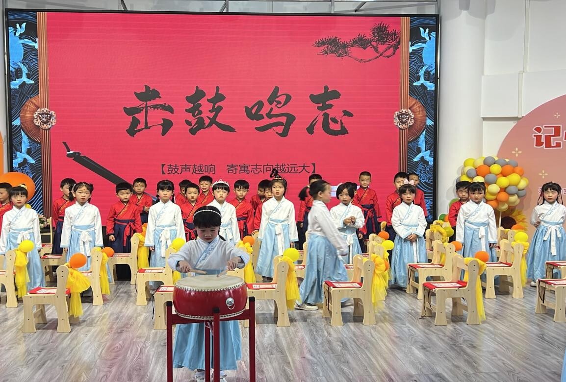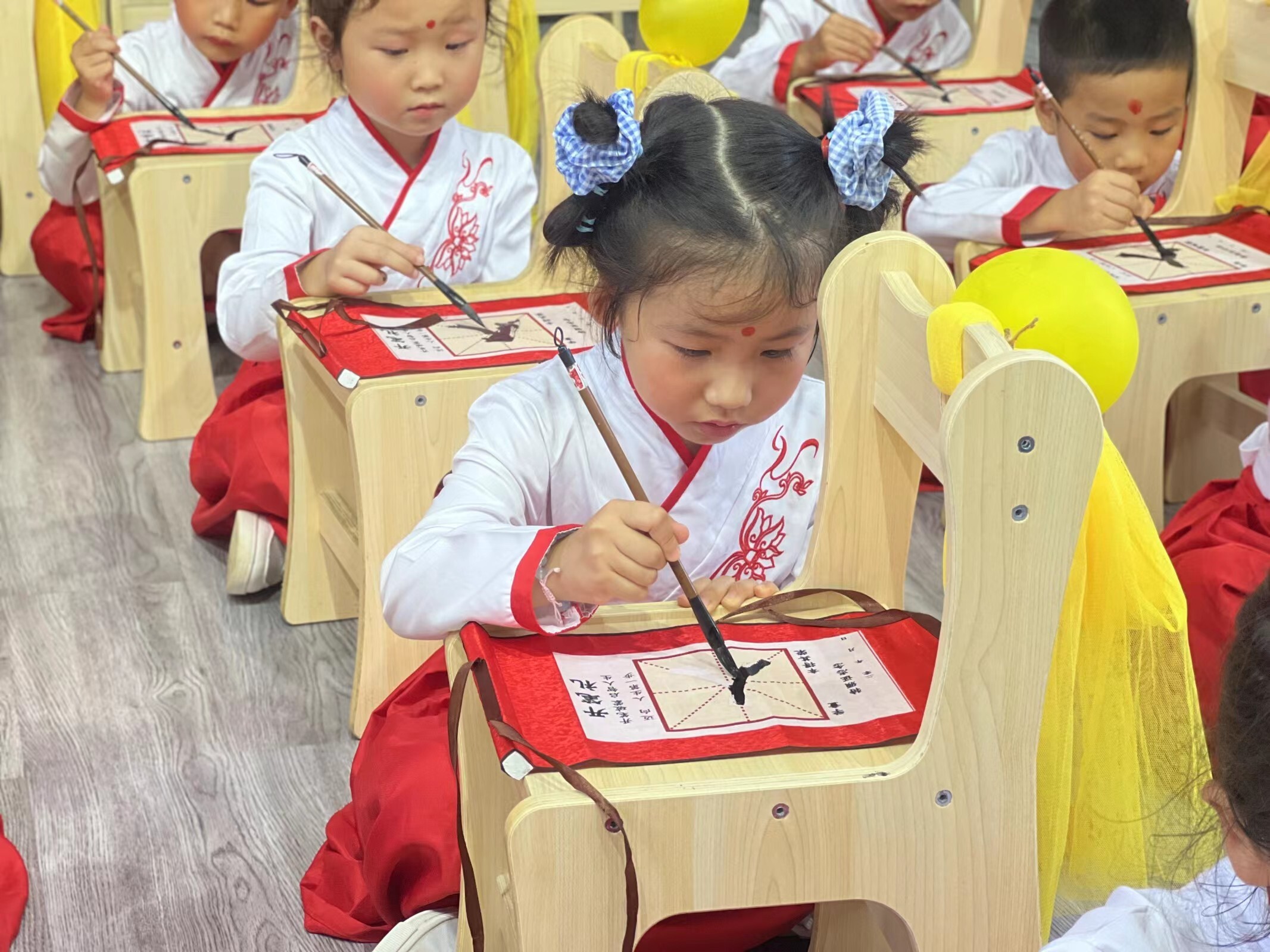 朱砂啟智—點朱砂又稱“開天眼”,寓意開啟智慧,老師為孩子們的額頭點上朱砂,為其“開智”,寓意著從此眼明心亮、聰明好學。