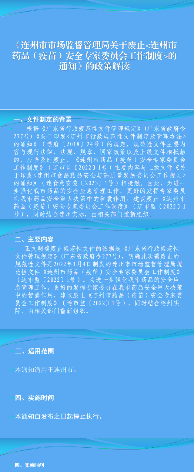 連州市市場監(jiān)督管理局關(guān)于廢止《連州市藥品(疫苗)安全專家委員會工作制度》的通知