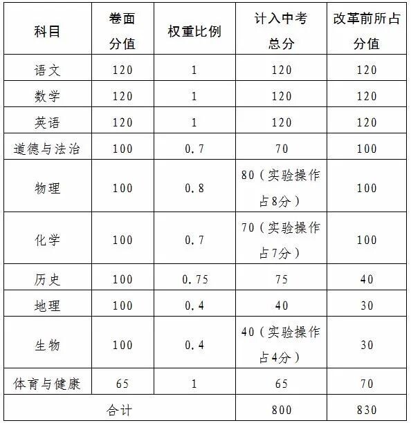 7.新的改革方案對中考計分科目分值如何調(diào)整的?