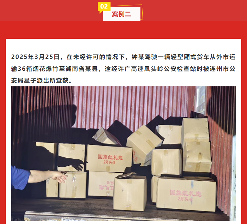 群眾安全無小事,非法運輸莫再試——連州2人因非法運輸煙花爆竹被行政拘留