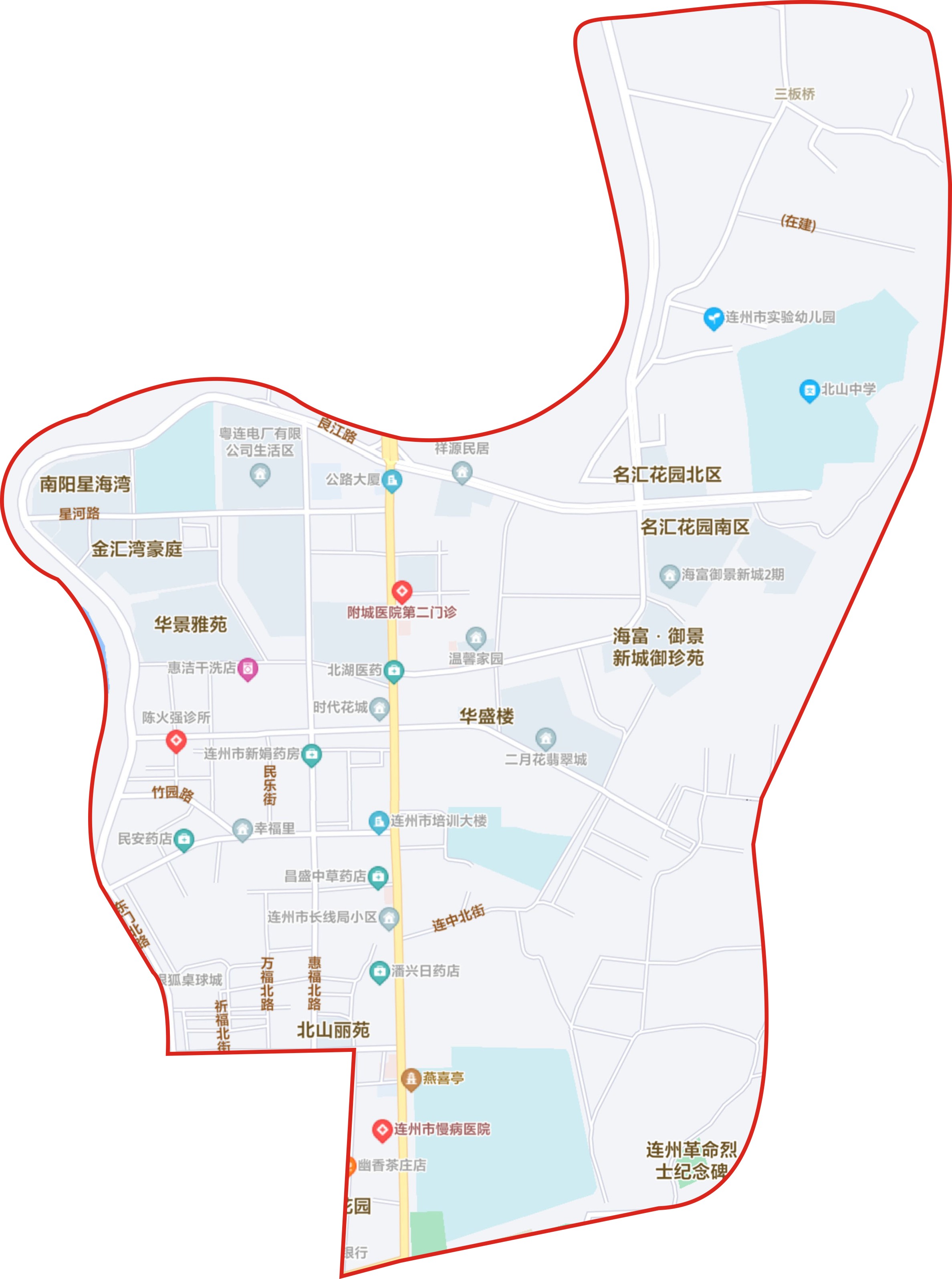(八)連州鎮(zhèn)湟川小學(xué):聯(lián)碧路、萬興西路路段以南區(qū)域;慧光路與高塘街交匯點(diǎn)過高塘街,再經(jīng)同福義井巷與城隍街的交匯點(diǎn),經(jīng)城隍街到城隍街與中山南路的交匯點(diǎn),再經(jīng)西隅街、湟川南路二街(一至六巷)到河邊路段的西北面;湟川南路二街與湟川南路交匯點(diǎn)至湟川中路與聯(lián)碧路交匯點(diǎn)路段以東的市區(qū)區(qū)域。(含天盈雅居、明日南灣小區(qū))。