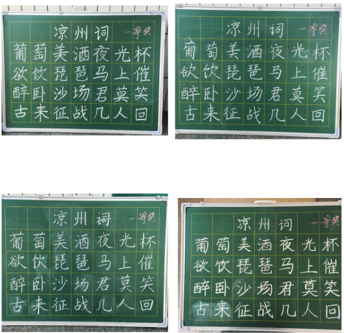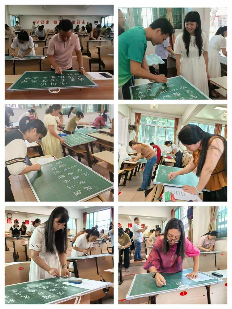 “粉筆飛花凝匠心,筆端自有漢風(fēng)揚(yáng)” 。 比賽現(xiàn)場(chǎng),參賽者屏息凝神,一支支粉筆在指尖飛舞。他們或頓挫有致,或行云流水,橫平豎直盡顯嚴(yán)謹(jǐn),落鋒收筆巧藏匠心。短短幾分鐘,一幅幅富有個(gè)性的作品便呈現(xiàn)在大家面前:有的老師字體端莊秀麗,筆畫舒展流暢,盡顯楷書的工整規(guī)范;有的老師筆鋒剛勁有力,結(jié)構(gòu)疏密有致,蘊(yùn)含行書的靈動(dòng)韻味,各具特色。這場(chǎng)比賽中,每一位參賽教師都全情投入,撇捺間盡顯師者風(fēng)采,橫豎中詮釋漢字優(yōu)雅。