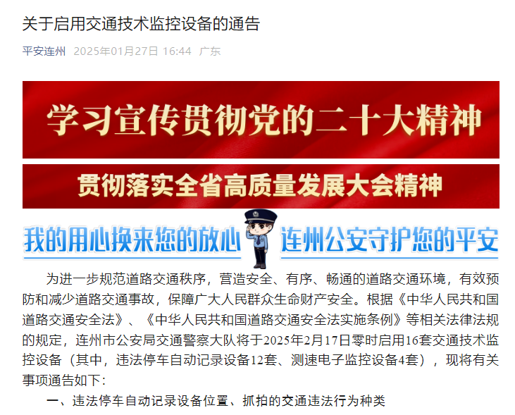 注意!今天起,連州正式啟用16套交通技術(shù)監(jiān)控設(shè)備