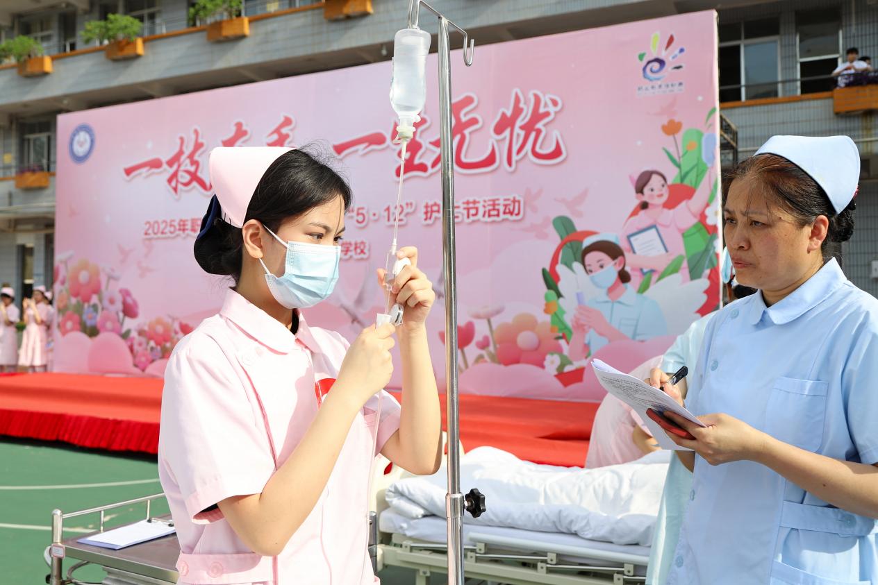 5月9日,開展“5·12”護士節(jié)慶祝活動,護理專業(yè)學生展示了心肺復(fù)蘇和靜脈輸液技能。在心肺復(fù)蘇技能展示環(huán)節(jié),通過模擬急救場景,展現(xiàn)扎實的專業(yè)功底。在靜脈輸液技能展示環(huán)節(jié),學生嚴格遵循無菌操作原則,每一個步驟都有條不紊、規(guī)范精準。學生們還進行了風采展示,獲得陣陣掌聲。從精準的靜脈穿刺到規(guī)范的無菌操作,從人文關(guān)懷溝通到團隊協(xié)作處置,每一個細節(jié)都彰顯出護理事業(yè)的嚴謹與溫度。